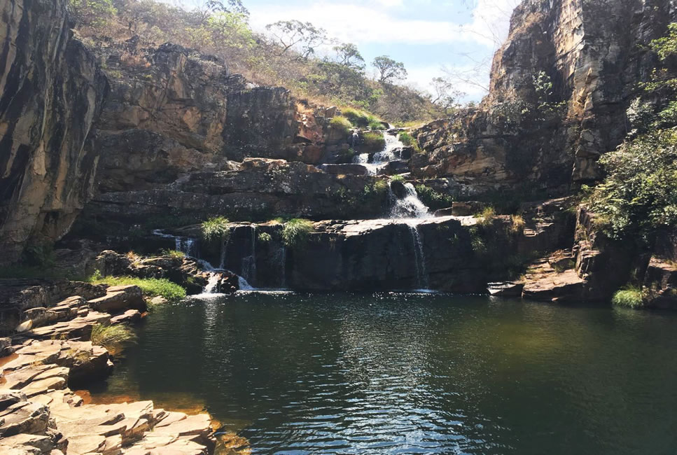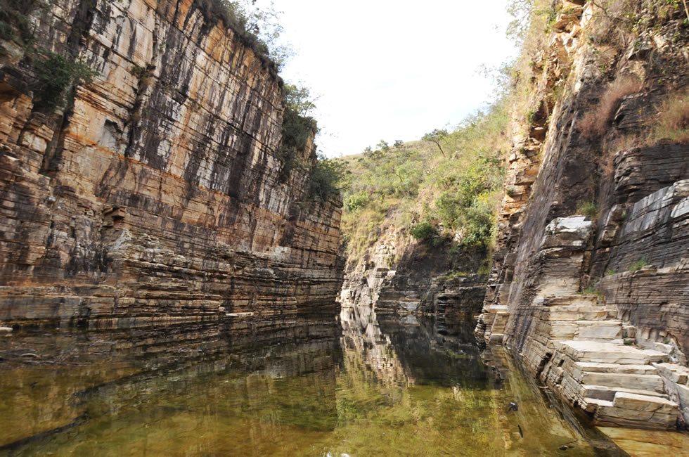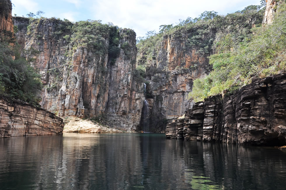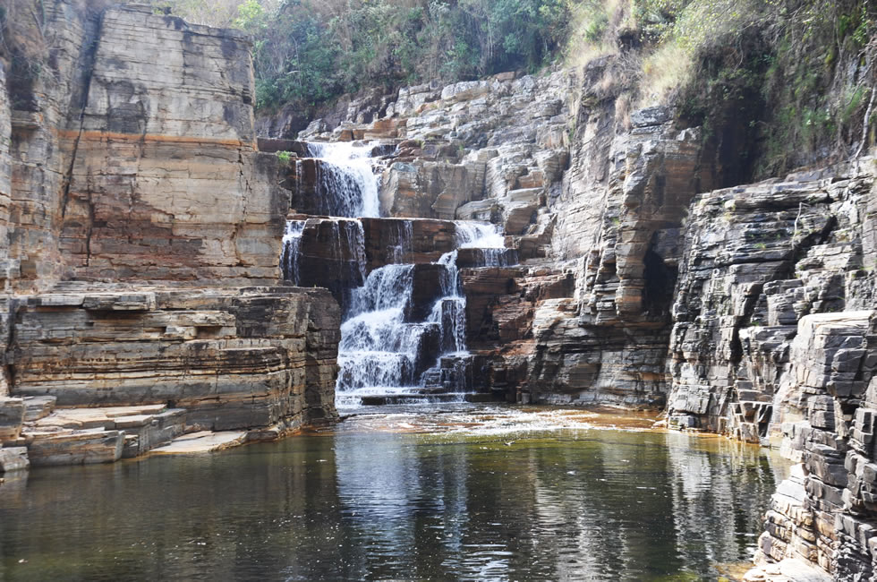 Principal parada do passeio, com paredões de rocha quartzito, tendo 65 m de altura onde se encontram duas cachoeiras, com aproximadamente 25 m de altura, lugar de beleza única.